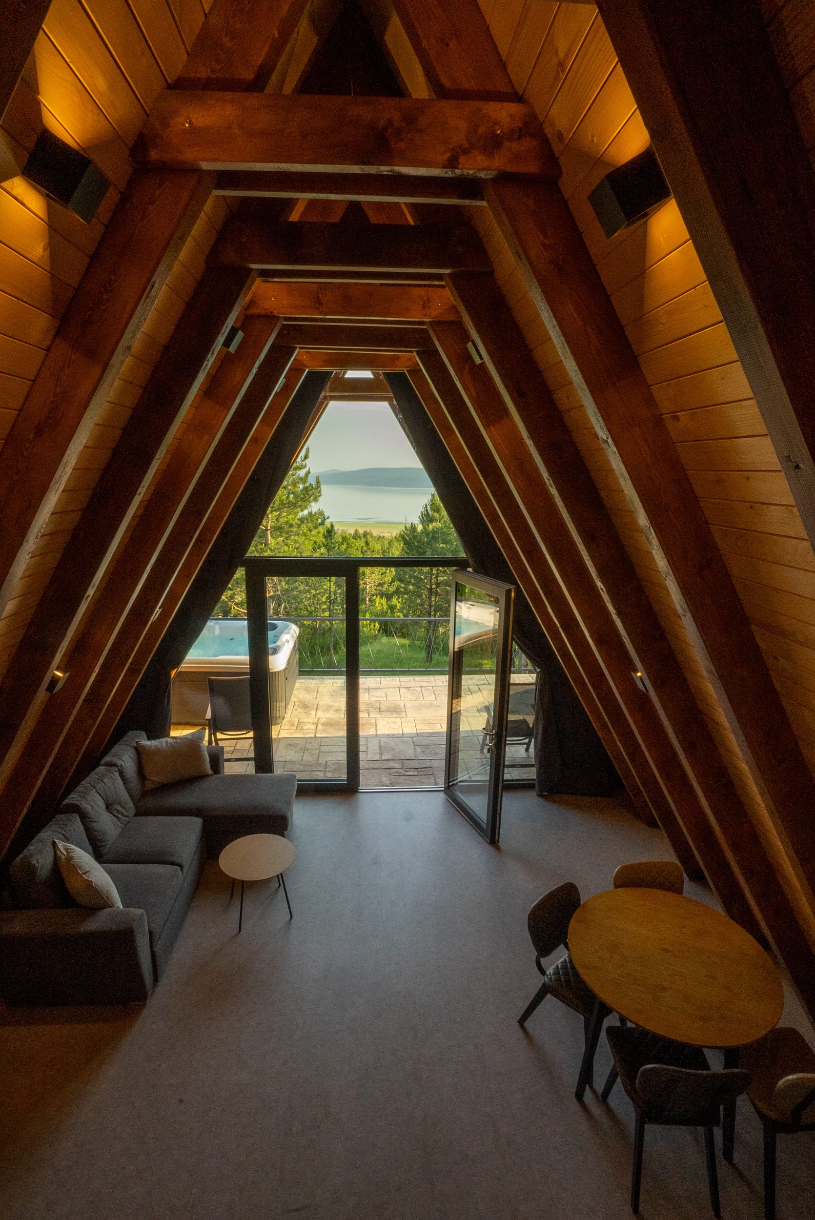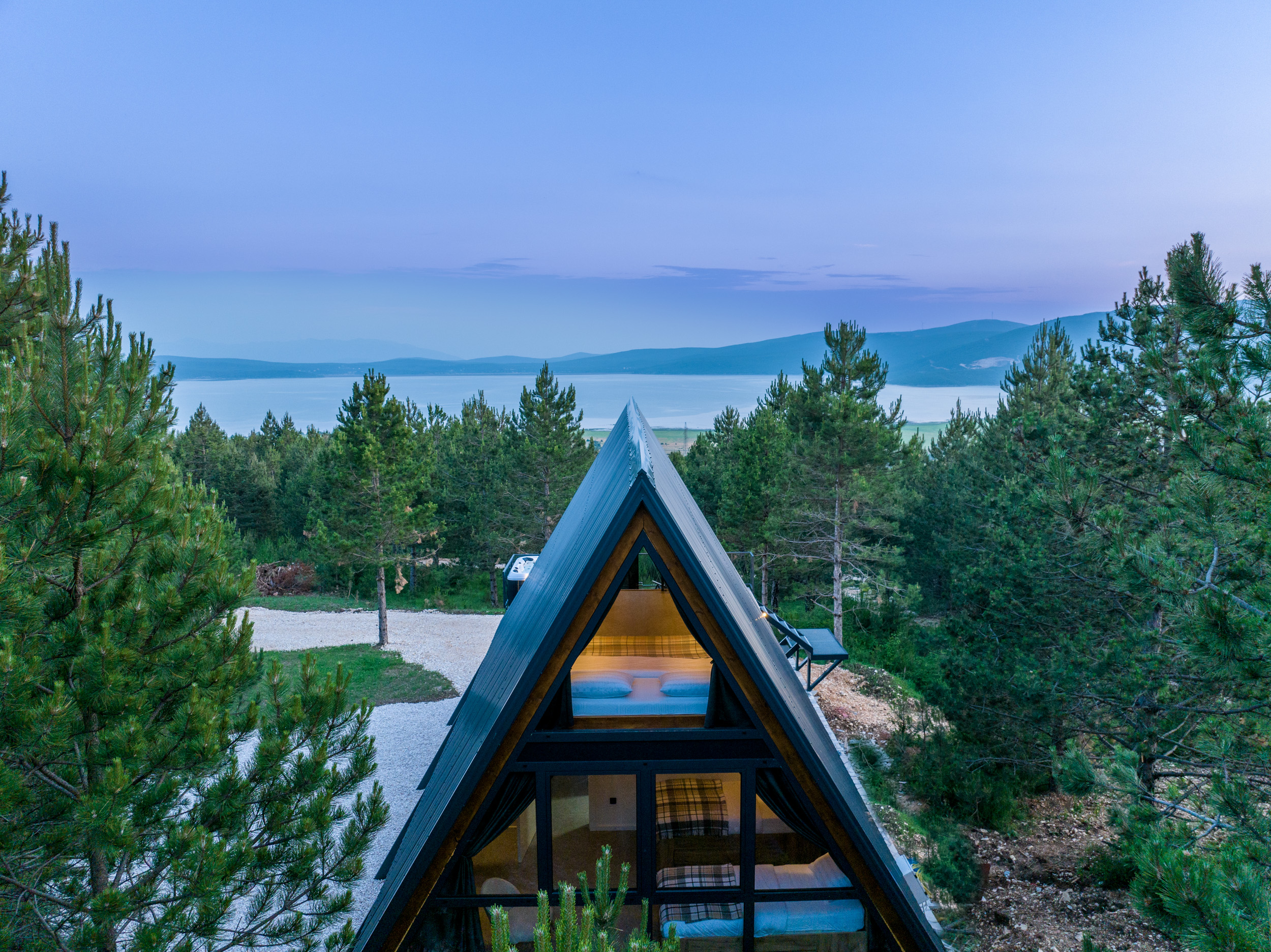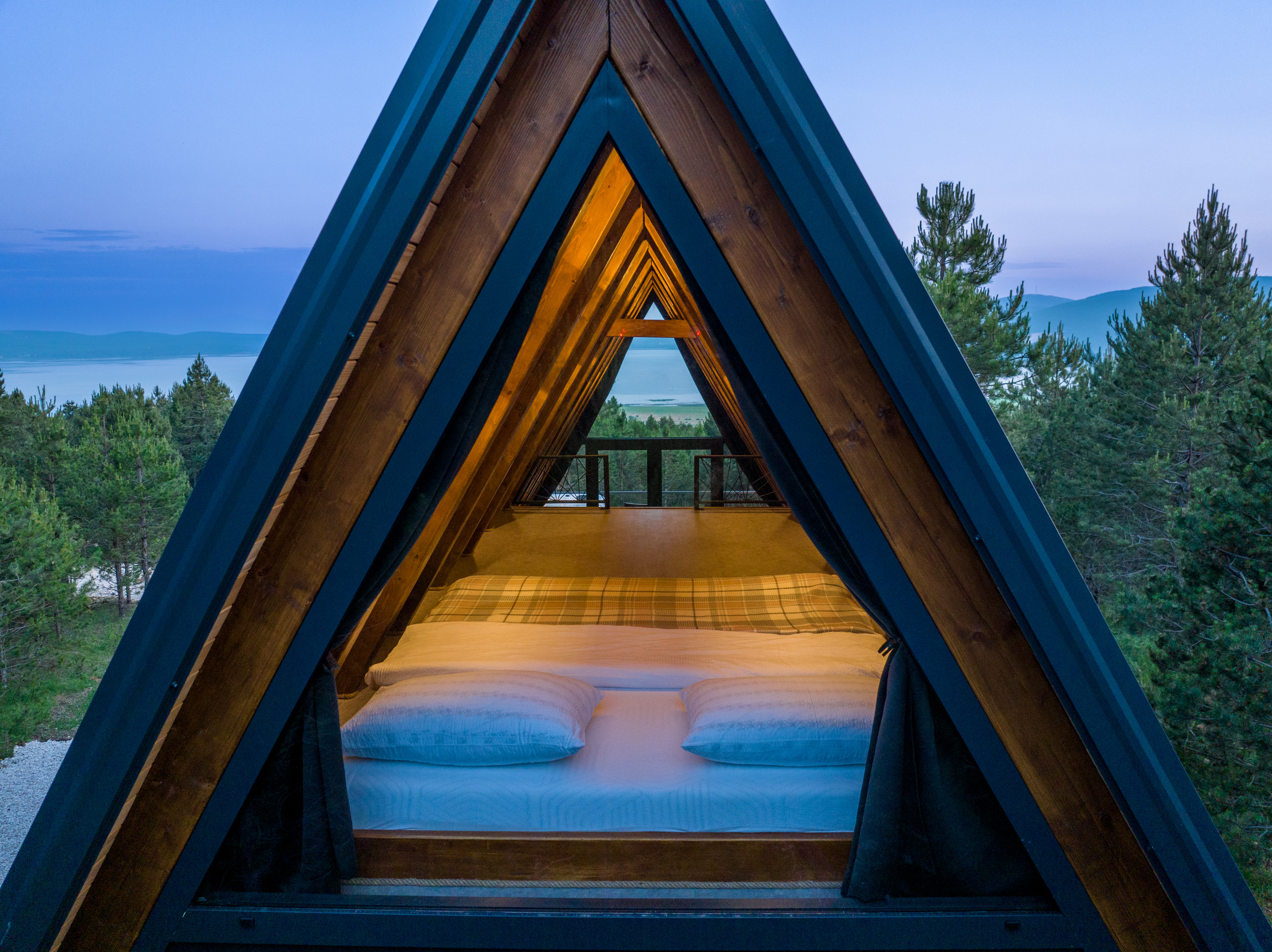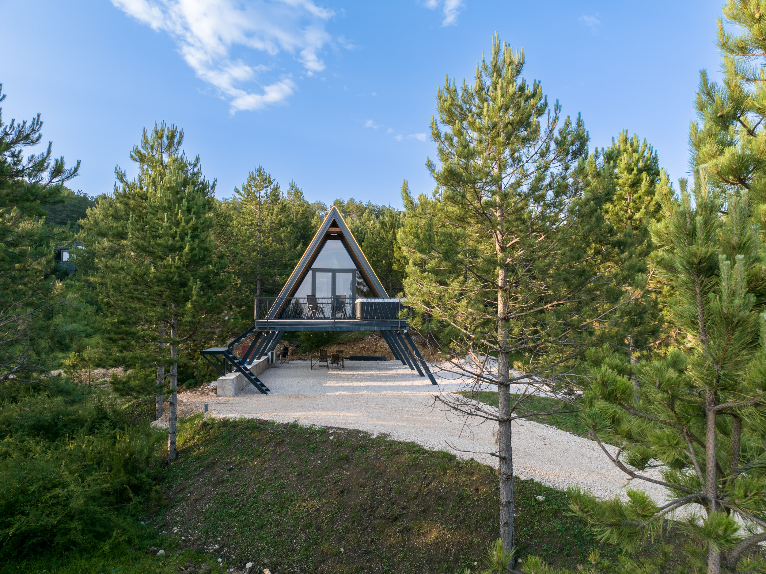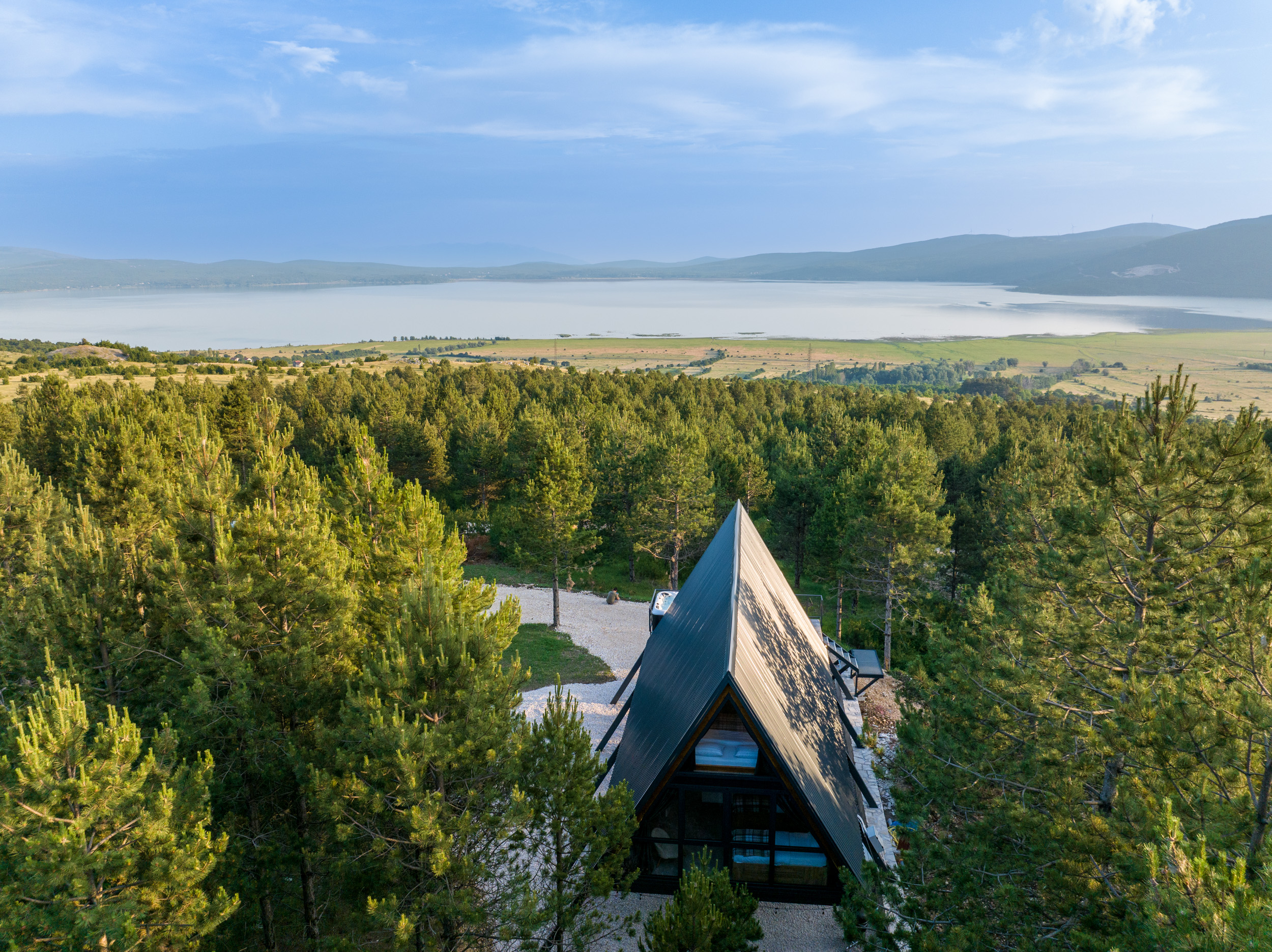Welcome to A-Frame House “Dinara”, our elevated and more modern version of a nature getaway, nestled among the treetops with an unforgettable view of Buško Lake. The house is raised on steel pillars, literally hovering at the height of the trees, offering a unique sense of freedom and privacy.